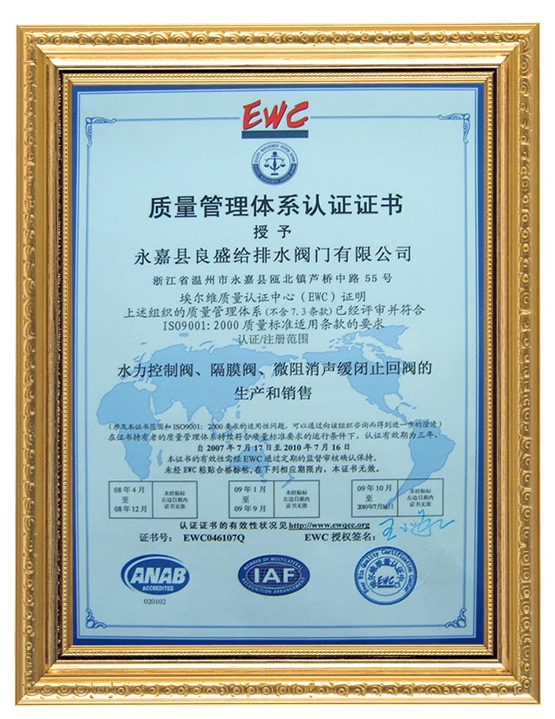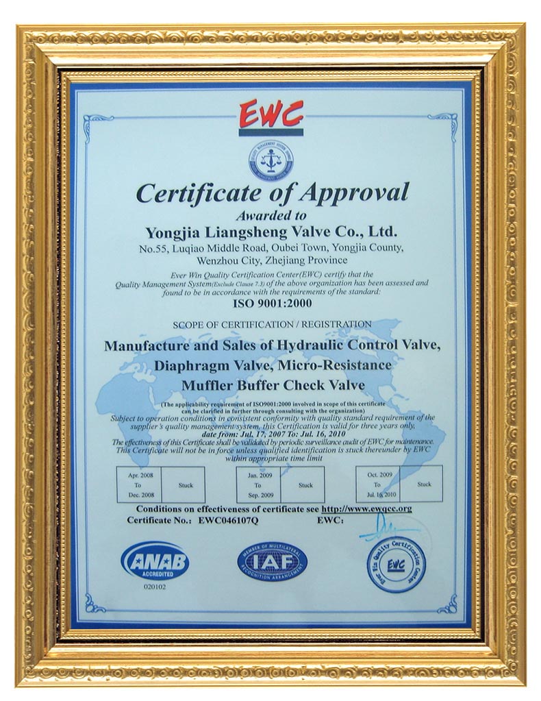 | Home | Company | Products | Certificates | Order | Service | ContactUs Copyright © 2008 ZheJiang LiangSheng Watersupply Valve Co.,Ltd all right reserved TEL: FAX:+86-577-67960995 E-mail:fm@chinaliangsheng.com |